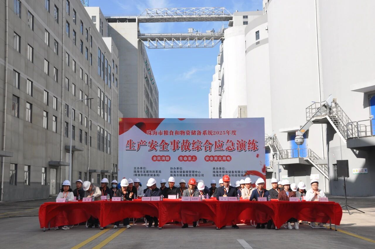 为深入贯彻落实习近平总书记关于安全生产的重要指示精神,切实筑牢粮食和物资储备安全防线,全面提升粮食和物资储备行业突发事件应急处置能力,2025年11月28日,由珠海市发展和改革局主办,珠海市储备粮管理中心、珠海粮食集团承办的“2025年珠海市粮食和物资储备系统生产安全事故综合应急演练”在珠海中心粮库圆满举行。市发改委党组成员、副局长王梦阳,MK在线集团党委委员、副总经理祝杰,市储备粮管理中心主任李锦镇等现场观摩指导,全市各区粮食系统相关负责人、安全管理人员及一线作业人员代表共100多人参与演练。